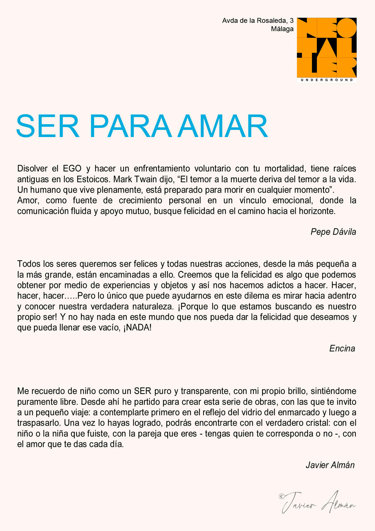 Como la araña teje y repara la tela rota (Louis Bourgeois), Javier Almán sana la herida propia y ajena con la creación de unos seres enmarcados en una obra que dialoga con el presente, partiendo de la quiebra de su relación con las heridas maternas y paternas, y las secuelas que les ha dejado el paso del tiempo.